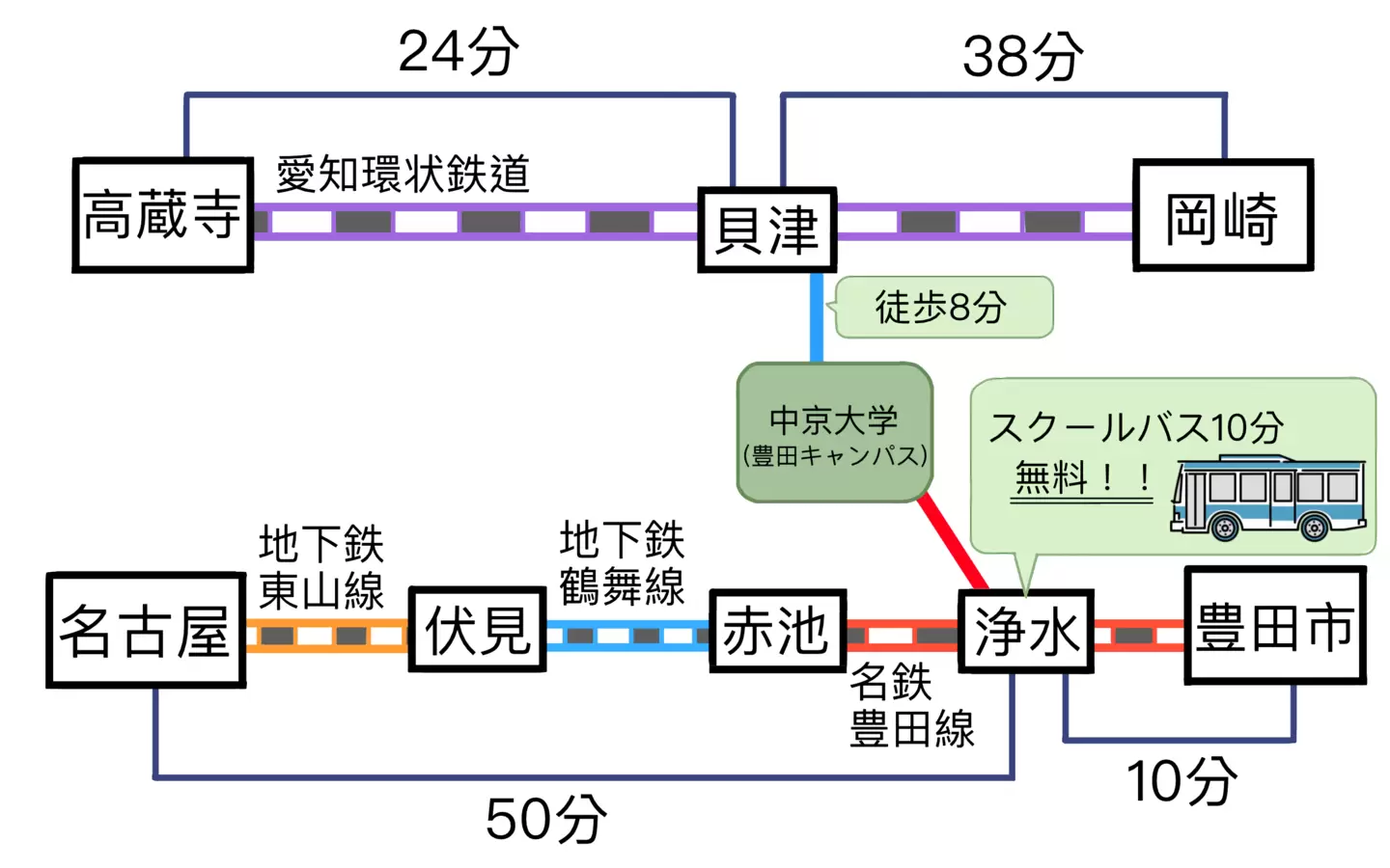 ☆電車での所要時間