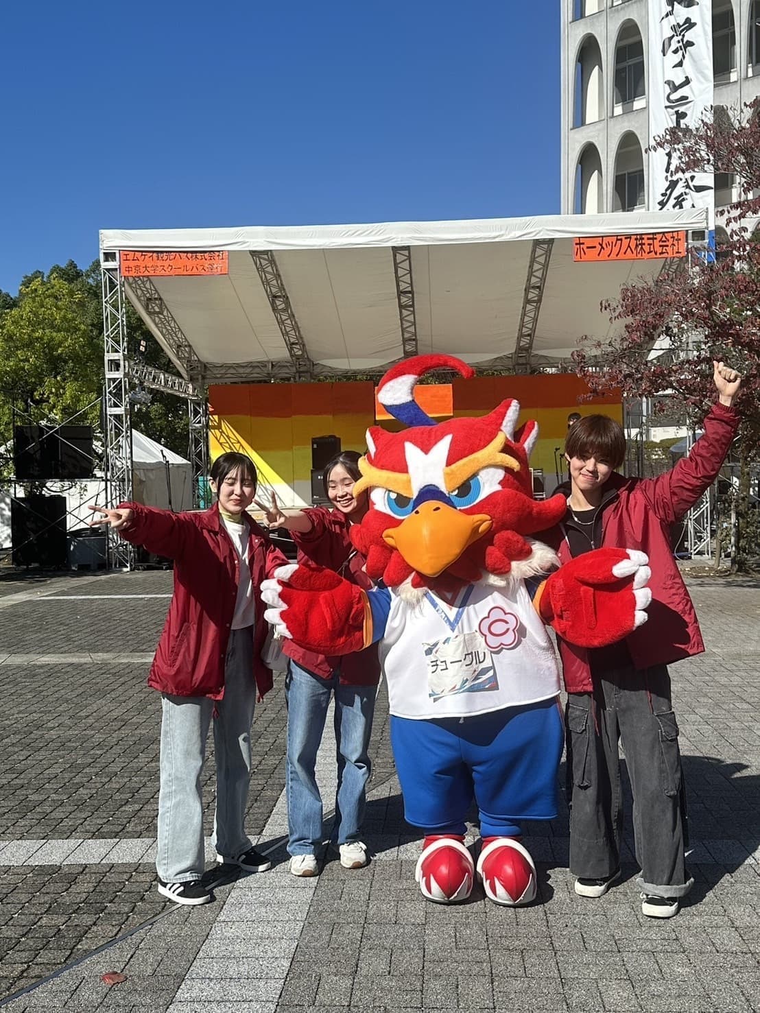 チューグル企画では中京大学のマスコットキャラクター「チューグル」がステージでダンスをします!皆さん一緒に踊りましょう!