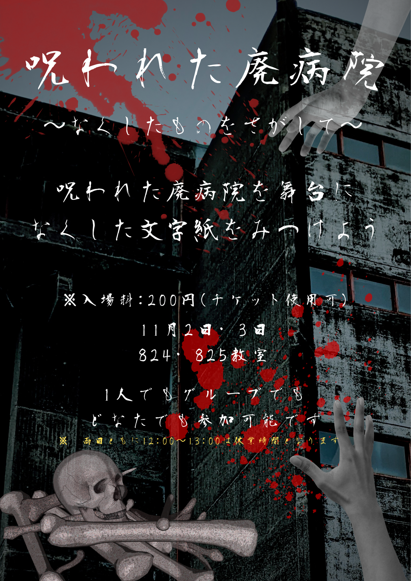呪われた廃病院を舞台になくした文字紙をみつけよう