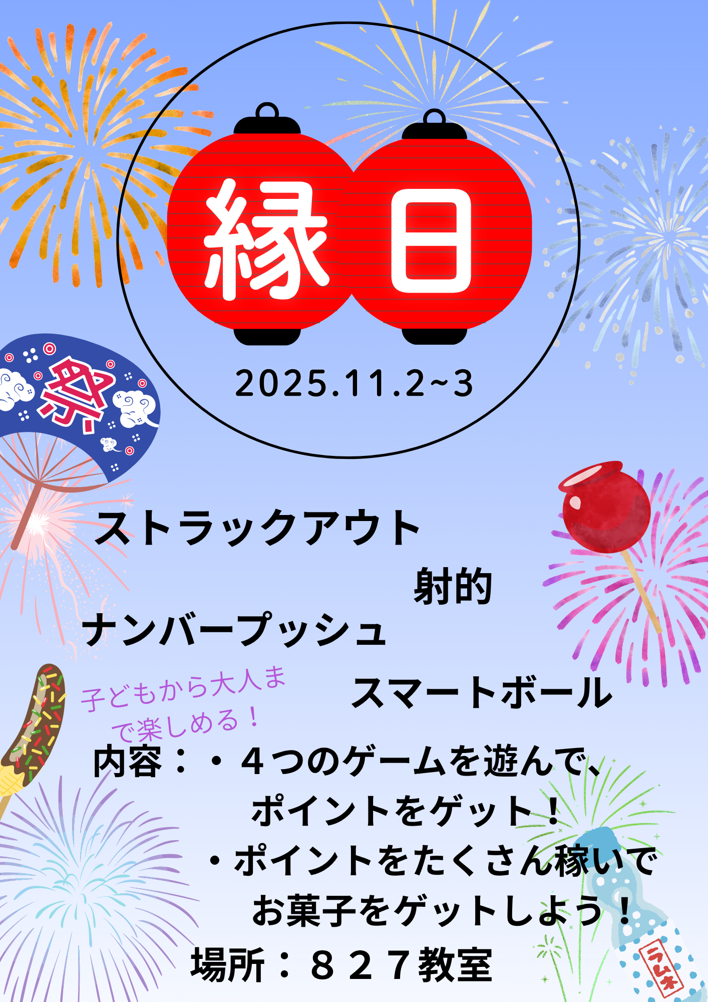 ストラックアウト・スマートボール・ナンバープッシュ・射的の4つのゲームができます!