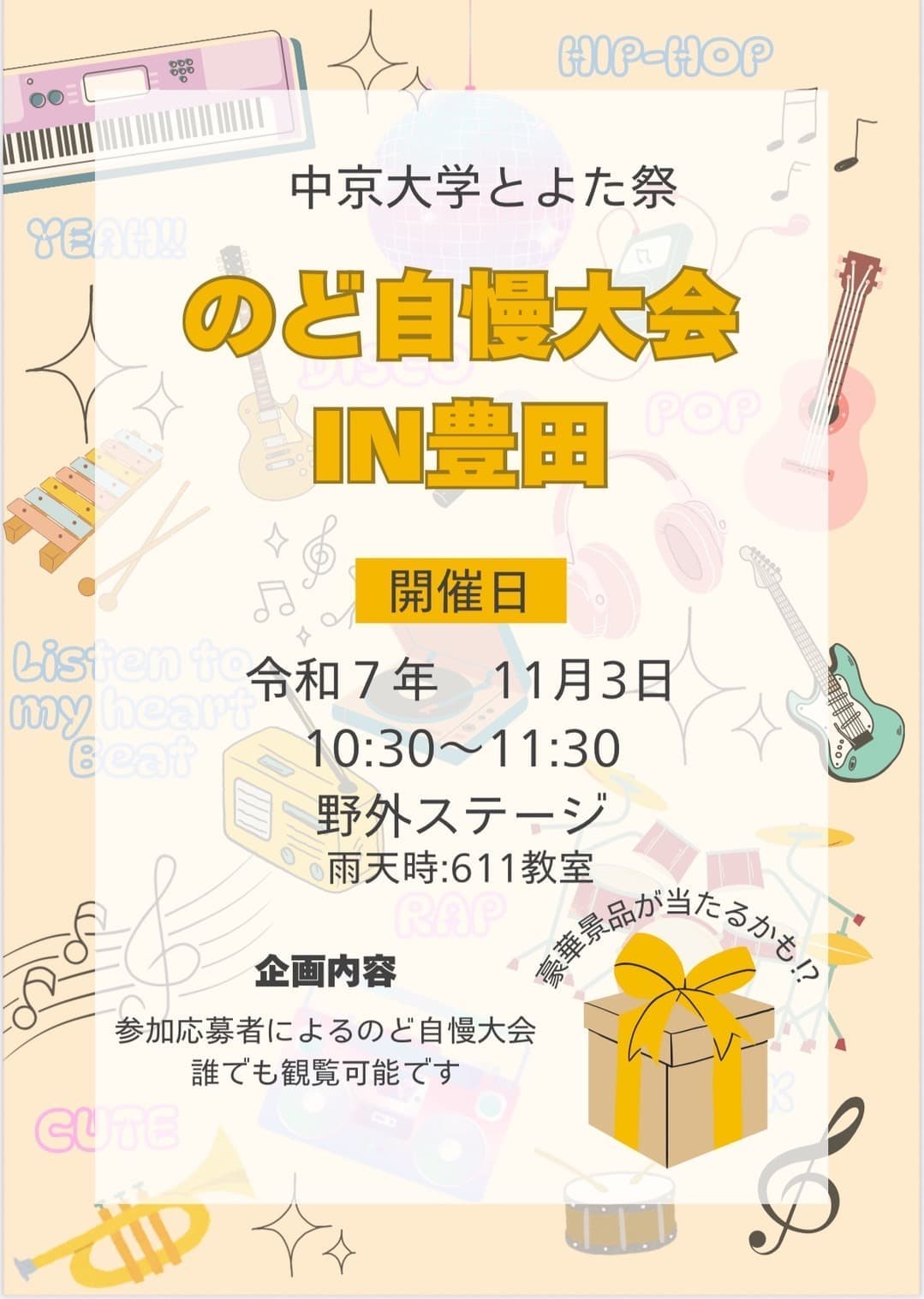 歌が得意な中京大学生によるのど自慢大会が、今年もやってきた!!優勝景品をかけて熱い戦いが繰り広げられます!