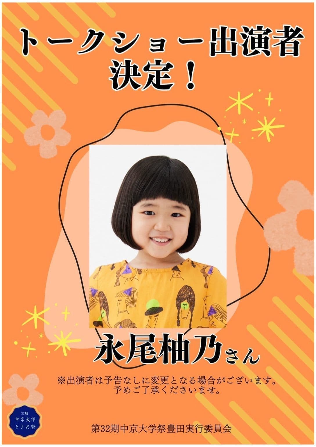 今年で第32回を迎えるとよた祭にお迎えするゲストは永尾柚乃さんに決定いたしました!皆様ぜひお越しください!