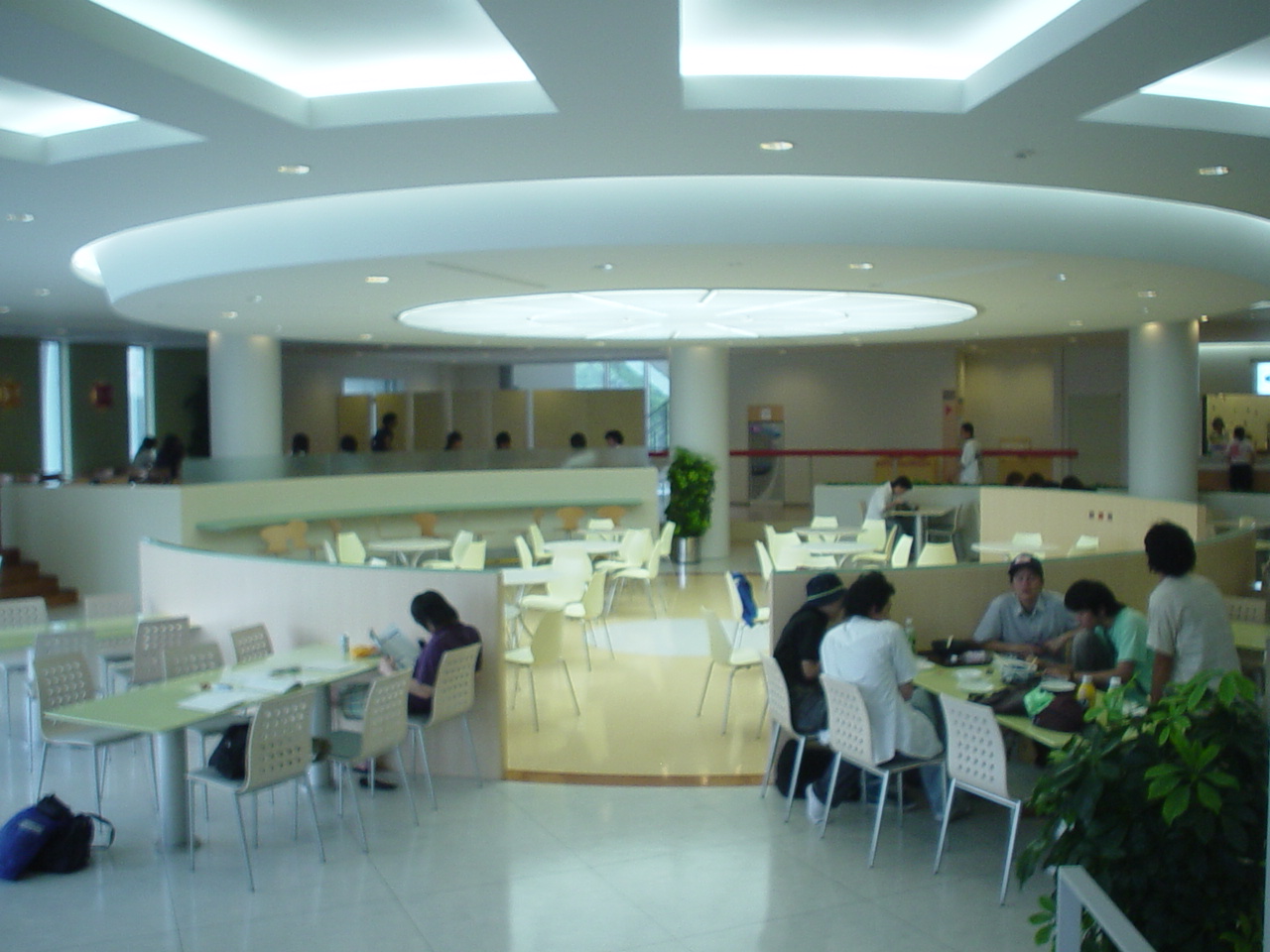 図書館です。 これが今年、新しく建設された21号館です。 中はこんな感じです。これは3階です。 2階にある食堂です。
